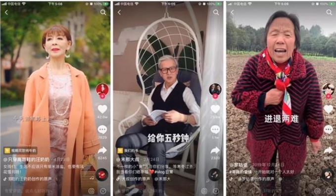 從 2018 年開始,一批中老年網(wǎng)紅在短視頻平臺(tái)上興起,如北海爺爺、羅姑婆、時(shí)尚奶奶團(tuán),以及今年興起的三支花、田姥姥等,他們或精致,或搞笑,心態(tài)年輕,接得上熱門梗。因?yàn)椴煌诩韧蟊妼?duì)老年人認(rèn)知的強(qiáng)烈反差形象,百萬(wàn)甚至千萬(wàn)粉絲平地起,當(dāng)然,受眾依然以年輕人為主,廣告匹配的消費(fèi)群體也是年輕人。
